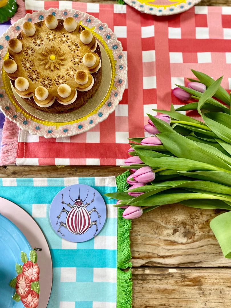 Fabric placemats, there will make sure to add a pop of colour and pattern to your table setting. Mix and match with the other colours from the same range. Super practical, can be machine washed at 40 degrees Celsius.