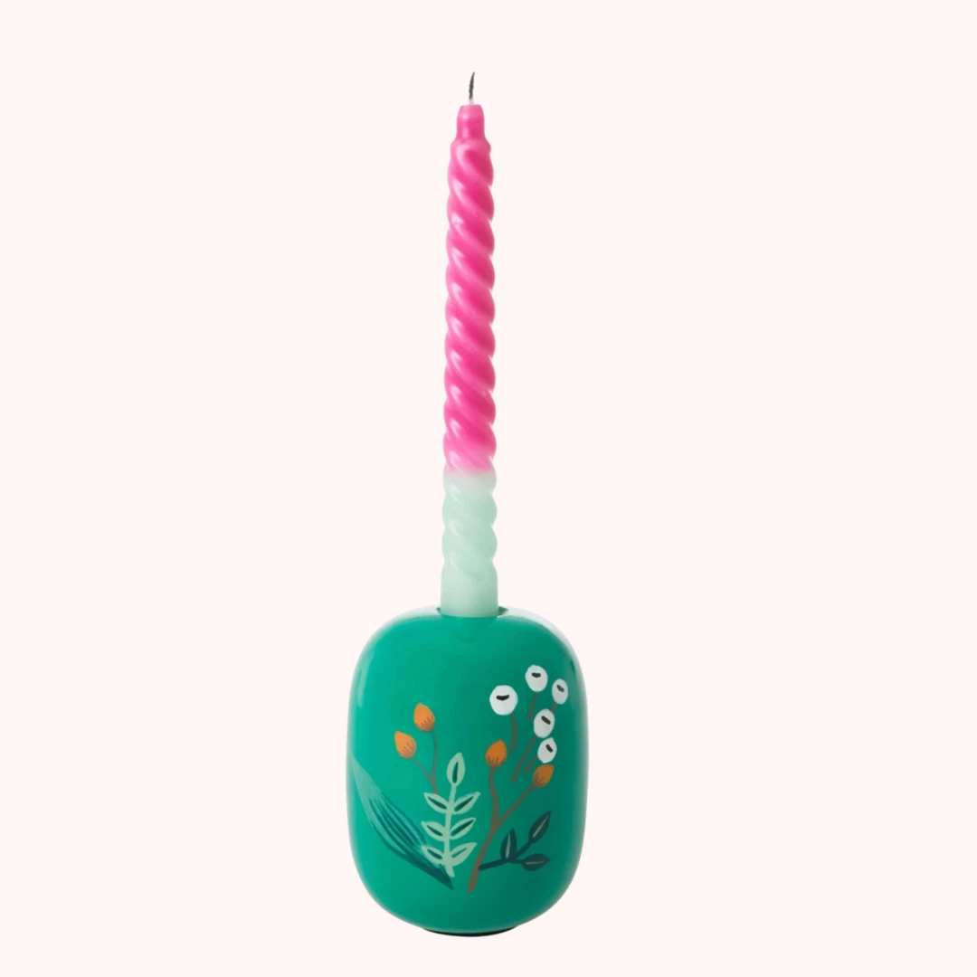 A classic has been revamped. We love the hand-painted details on this holder meaning no two products will ever be the same, which we think is part of the charm. This candle holder is perfectly paired with the neon tapers or twisted dip dye candles for a fun and playful table scape. measures H11 x Dia 8,5 cm.