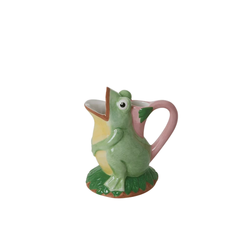 The sweetest little vase jug of a happy green frog. The vase is drawn by Charlotte Gueniau’s (RICE DK Creative Director and Co-founder) daugther, Selma Gueniau. Selma started with a drawing that has ended up being this beautiful and funky vase. we love practical things with a funky twist. This vase embodies exactly that. It will definitely make add some extra magic no matter where you place it. This is a vase, and not suitable for other liquids than water.