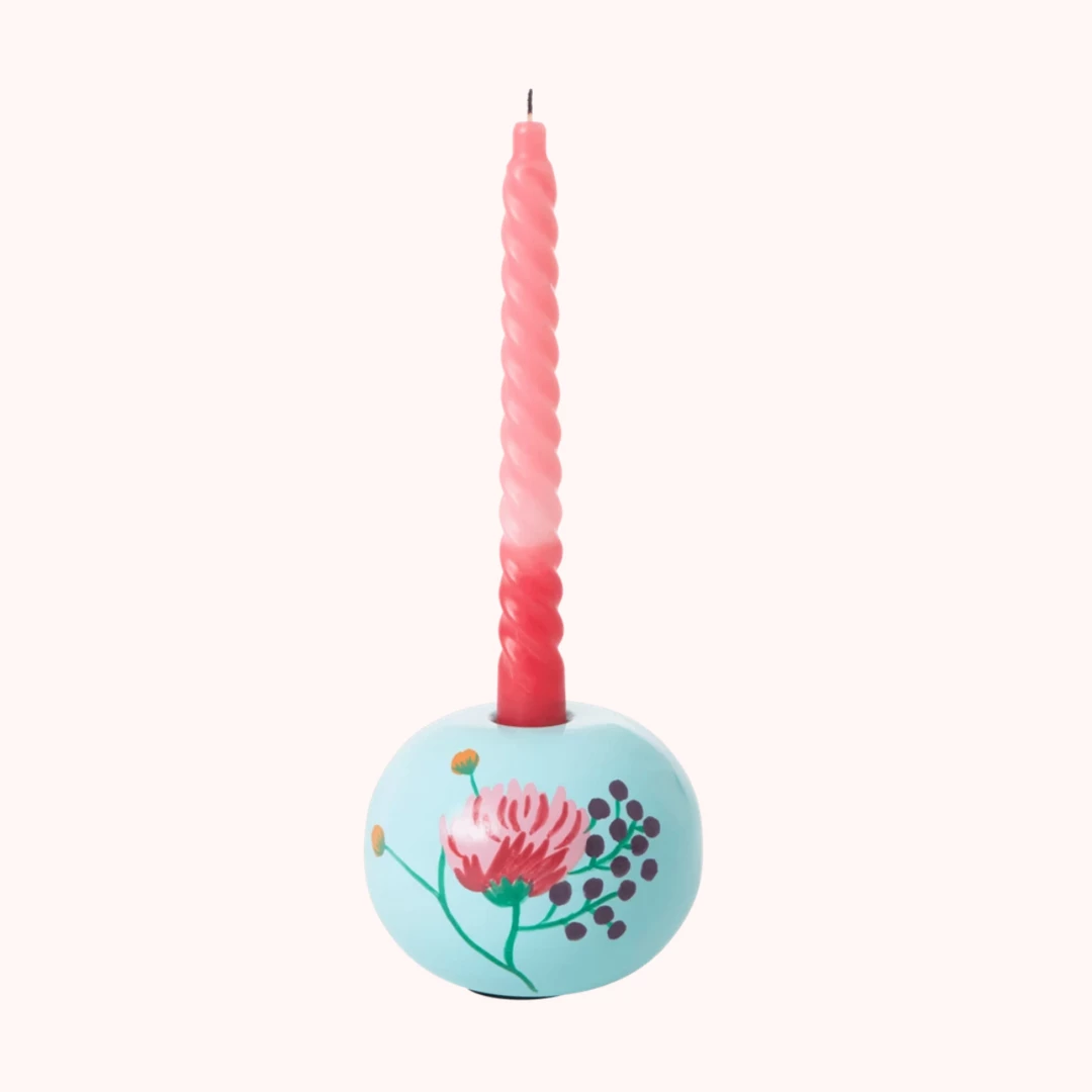 A classic has been revamped. We love the hand-painted details on this holder meaning no two products will ever be the same, which we think is part of the charm. This candle holder is perfectly paired with the neon tapers or twisted dip dye candles for a fun and playful table scape. Measures H 8 cm x Dia 10 cm.