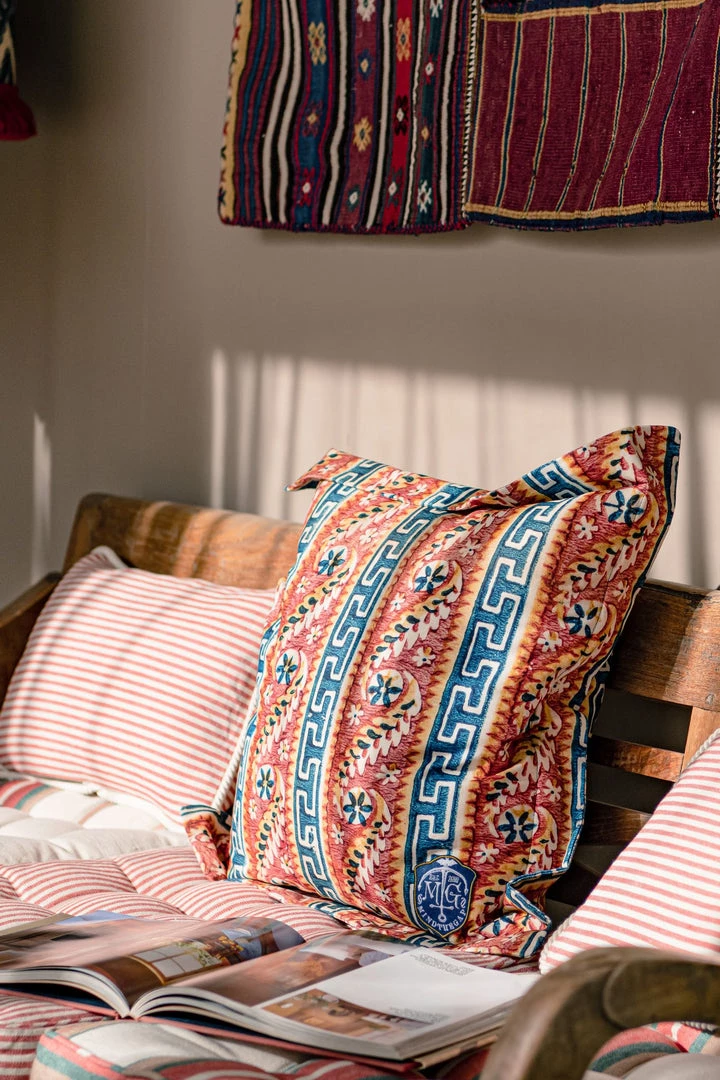 Displaying an authentic vintage Greek pattern in warm red shades and washed out blue hues, the Samothraki outdoor cushion emphasises the exotic wilderness of Greece’s remote places. Made of 100% polyester fabric and with polyfoam filling, the cushion is decorated with an embroidered nautical patch, being a great option to enhance your sunbeds or outdoor furniture.