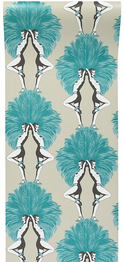 Showgirls Wallpaper Metallic Teal & Cream