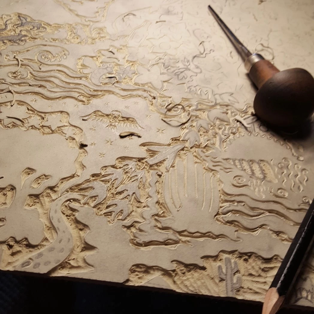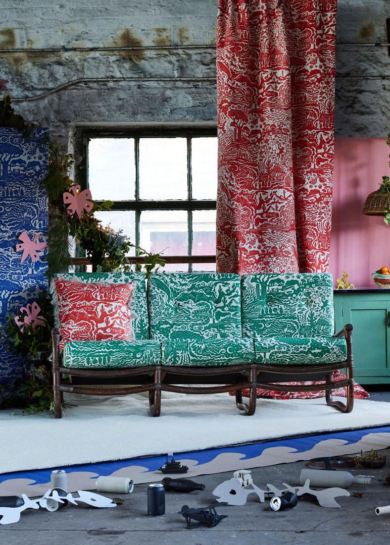 Alexis sketched the design, before hand-carving into lino block which was printed by hand. This pattern was then screen-printed onto bespoke cotton-linen fabric a heritage mill in Cumbria.Â