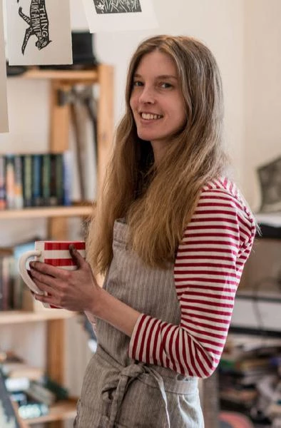 “I like things that are a bit dark and strange and I’m always drawn to a good story. A flea market, a late night drunken conversation, an old advert or a matchbox might get me thinking about a new idea. I love working in lino. I once heard someone say there is no room for hesitation or apology in lino cutting and I think that the fact you have to be brave and just go for it appeals to me.”