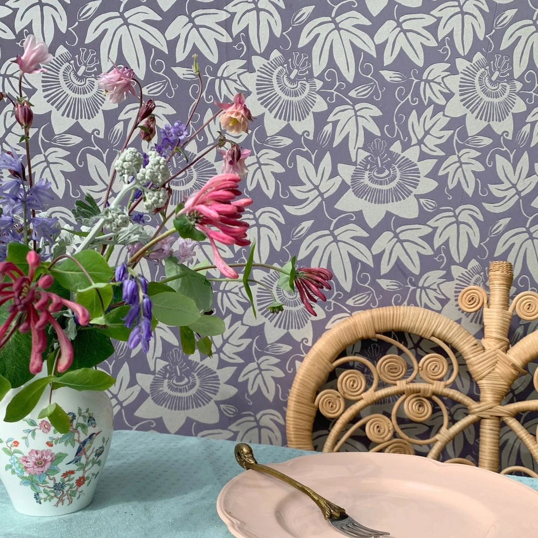 Working with artist Alexis Snell, a printmaker who works with beautifully unique linocuts to create Passion Flower wallpaper.