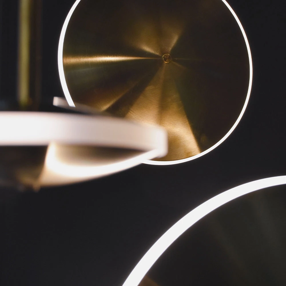 Mimicking the phosphorescent envelope found around the stars, Chrona lights create a luminous glow by combining spun brass and diffused acrylic. Available in brass or stainless steel with a variety of both horizontal and vertical orientations, dish pendants can be clustered together to create constellations or solo – as beautiful as a shooting star. Â