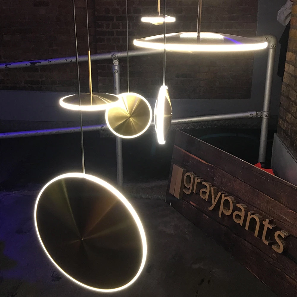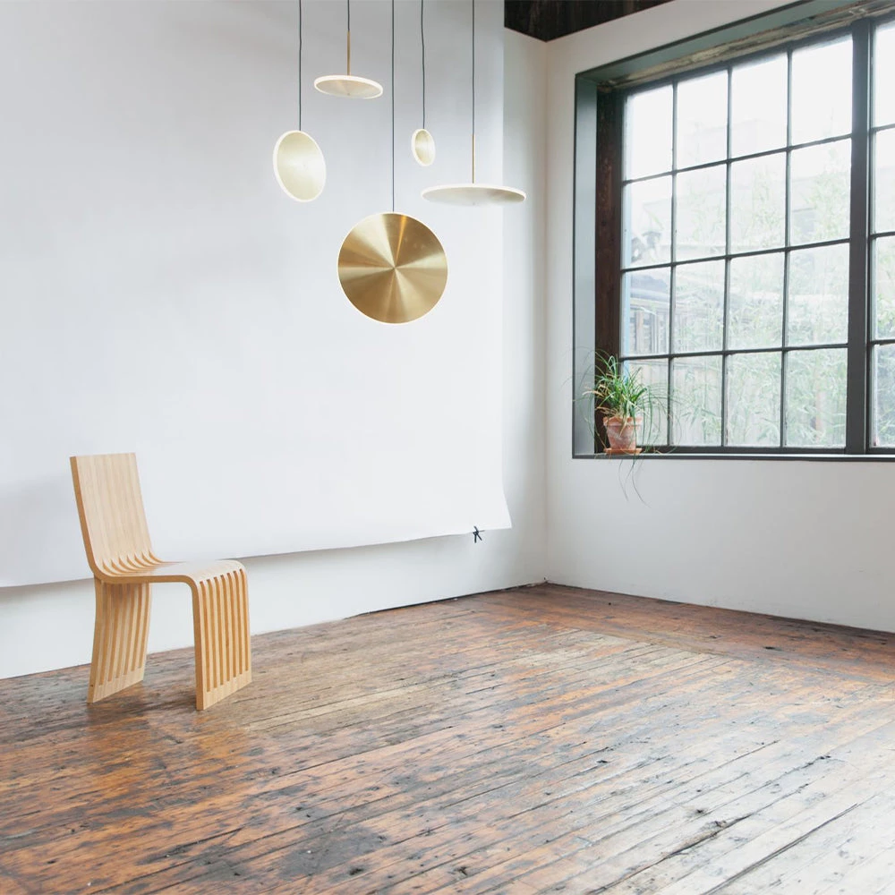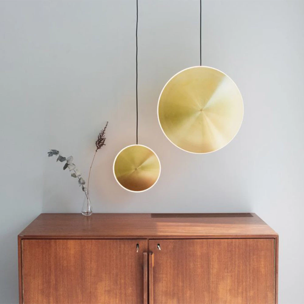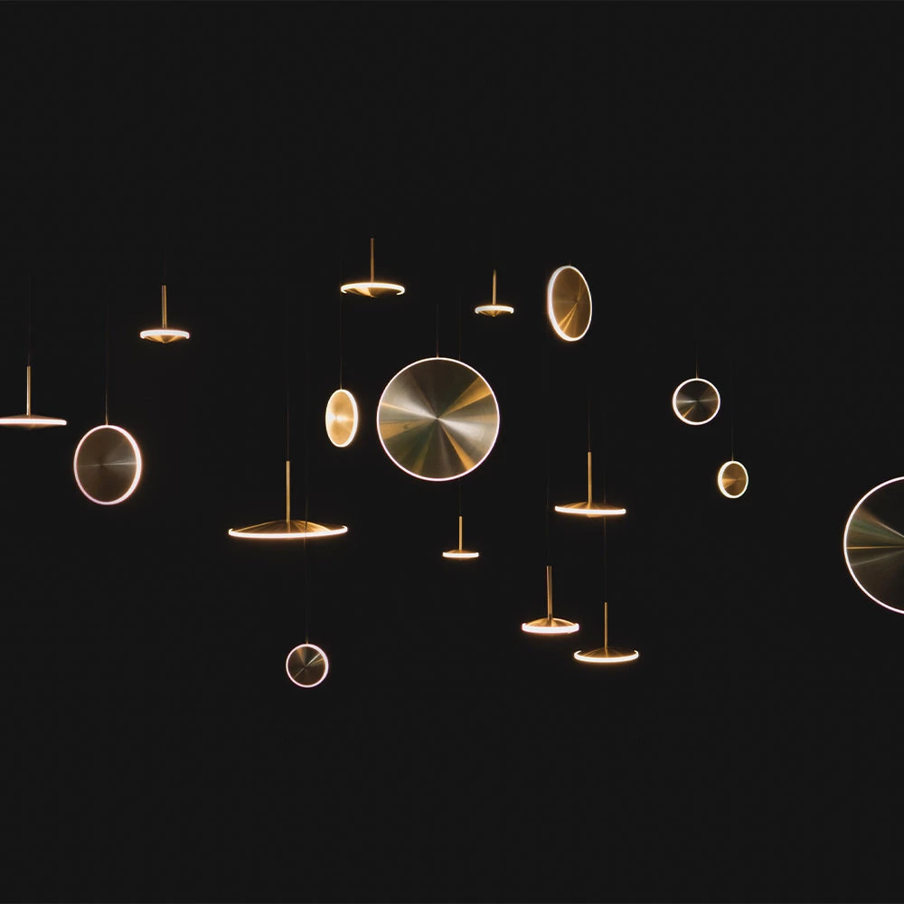 Mimicking the phosphorescent envelope found around the stars, Chrona lights create a luminous glow by combining spun brass and diffused acrylic. Available in brass or stainless steel with a variety of both horizontal and vertical orientations, dish pendants can be clustered together to create constellations or solo – as beautiful as a shooting star. Â
